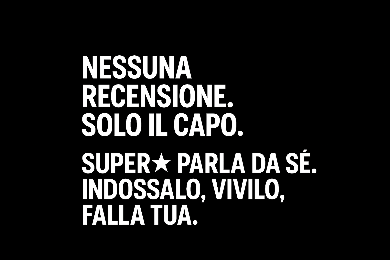 NIENTE COMMENTI FILTRATI, NIENTE OPINIONI ESTERNE.SOLO QUALITA', STILE E AUTENTICITA' CHE PUOI VIVERE INDOSSANDO UNO DEI NOSTRI PRODOTTI.
